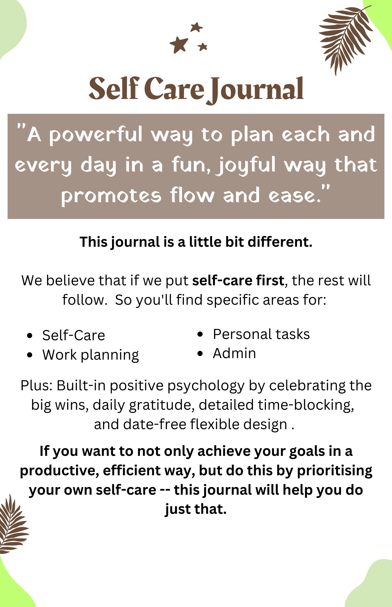 If you want to not only achieve your goals in a productive, efficient way, but do this by prioritising your own self-care -- this journal will help you do just that.